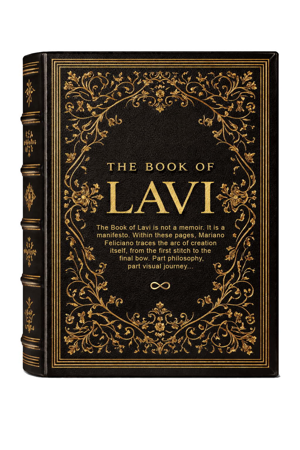 The Book of Lavi is not a memoir. It is a manifesto. Within these pages, Mariano Feliciano traces the arc of creation itself, from the first stitch to the final bow. Part philosophy, part visual journey…